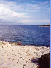 fourty meters far from the beach. The beach is beuatiful white stone